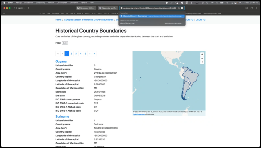 Day 1 kicked off with Welcome remarks from Dr Joana Simoes (OGC DevRel) and Peter Parslow (ISO/TC 211 Chair-elect). After the welcome remarks, Clemens Portele (interactive instruments) and Panagiotis “Peter” Vretanos (CubeWerx) presented the Goals of the sprint. On Day 1 we also had discussions on queryables and geometry simplification, and Mentor Stream sessions on Sharing data through OGC API – Features led by Dr Joana Simoes (OGC), as well as another session on Introduction to SpatioTemporal Asset Catalogs (STAC) and its use of OGC API features led by Chris Holmes (Planet), Rob Emanuele (Microsoft) and Matthew Hanson (Element 84). In between the discussions and the mentor streams, there was plenty of coding.
