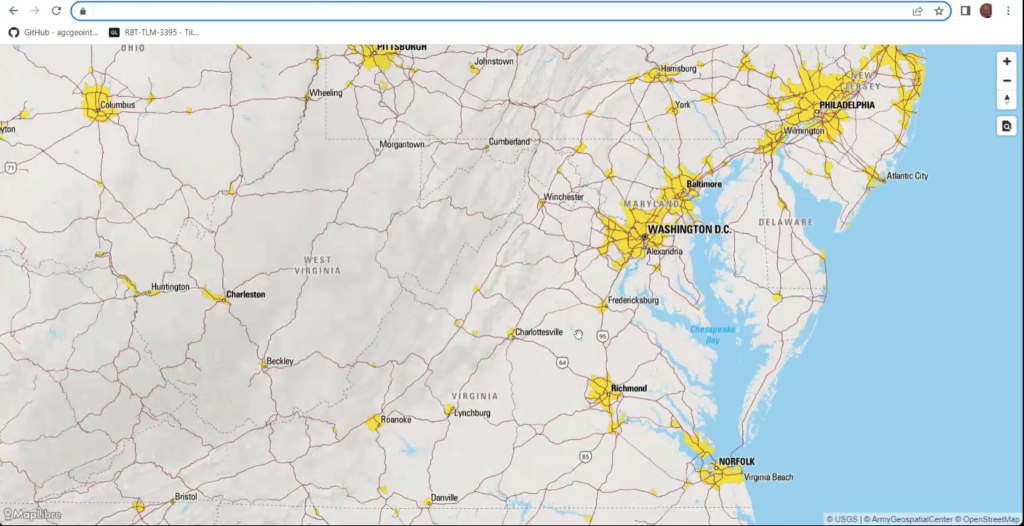 During the code sprint, personnel from the US Army Geospatial Center (AGC) presented the Releasable Basemap Tiles (RBT) product which has been in development at AGC (Figure 6). The presentation enabled participants to identify an approach for how QGIS and GDAL could support workflows that involve the downloading of vector tiles and map tiles from an OGC API and the storage of the tiles in a GeoPackage.