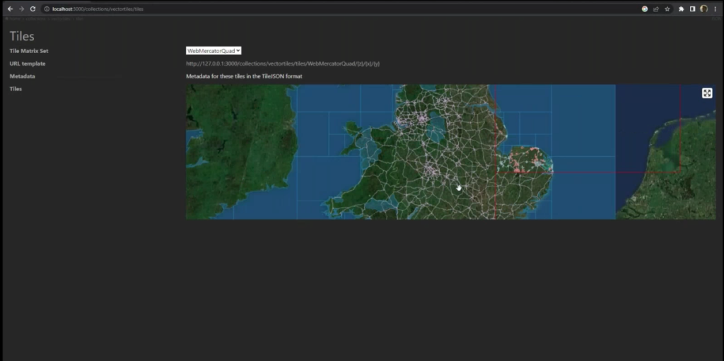 Figure 5 is a screenshot of the pygeoapi application enabled to support OGC API – Tiles.