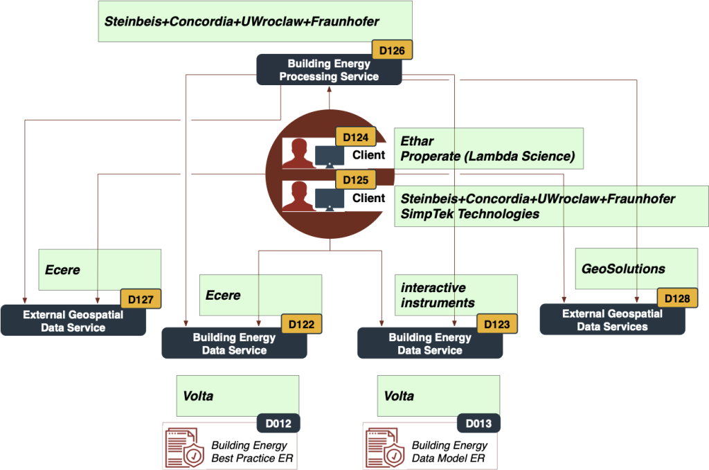 Energy building spatial data interoperability allows us to explore interoperability within domains, where specific data and knowledge paired with established and emerging systems pose various challenges to interoperability and data integration. The topic is hotter than ever before with the current sky-rocketing energy prices. It addresses how to build robust platforms for a specific community that bridges all the way from raw data to decision-makers. The participants and their roles are presented in the figure below: