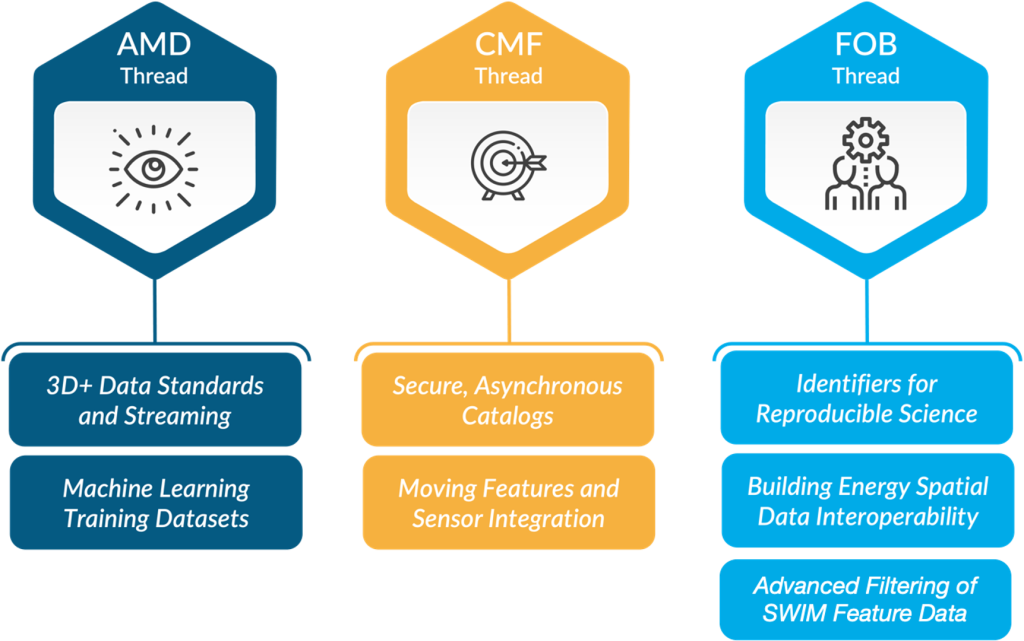 Responses to the Call for Participation (CFP) were due in March for the Identifiers for Reproducible Science, Building Energy Spatial Data Interoperability, Advanced Filtering of SWIM Feature Data, Secure, Asynchronous Catalogs tasks; the deadline was in May for Machine Learning Training Datasets and Moving Features and Sensor Integration tasks; and the deadline was in July for 3D+ Data Standards and Streaming. Copies of the CFP are available in HTML format and PDF format.