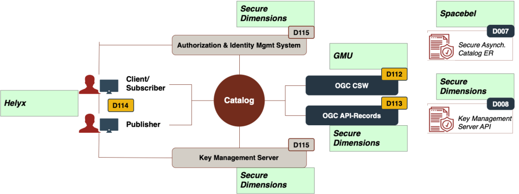 Secure, asynchronous catalogs are a second contribution to open science environments. They address the current challenge with more and more data becoming available and the corresponding complexity with discovery and binding. The task components and their participants are presented in the figure below: